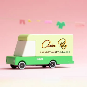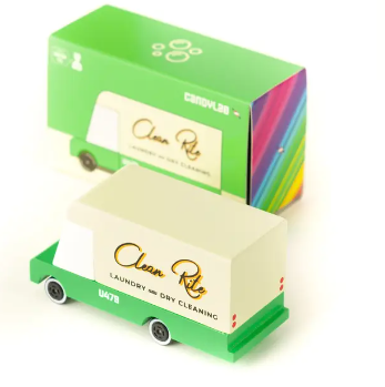 Let's be honest, when did we last see a Laundry toy van? We figured we should fix that. This Laundry Van is here to do all the dirty laundry that you really don't want to do. Materials & Info: Solid Beech Wood, water-based paint and clear urethane coat. ABS plastic rims, with rubber tires.
