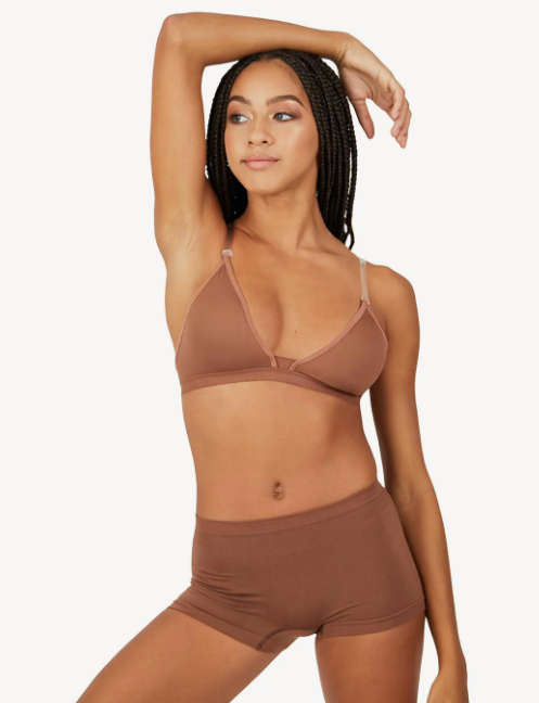 Say goodbye to noticeable bra straps! Designed to fit under leotards and costumes, this bra features a clear back strap that provides support in a discreet way. With a deep plunging neckline, this bra offers a secure, uplifting fit. Both the clear and dyed-to-match bra straps adjust and transition between three back neckline positions for different looks and functional support.