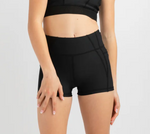 Feel energized and free to move with the Hot Shot Shorts in Black. Designed with a wide, smooth finish, double-layered waistband with an elastic top to hold in place—these shorts sit mid-rise on the waistline. Dual phone side pockets have been added on the legs to stash cards, phone or keys. These shorts are built to support you through any workout.