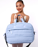 Crafted from our quilted material and available in four vibrant colors, it’s designed to keep up with your every move. The spacious main compartment ensures you have room for all your essentials, while two handy outer pockets provide a convenient spot for separating wet or dirty items. Measuring approximately 19 inches by 13 inches, this duffel is the ideal size for every dancer on the go.