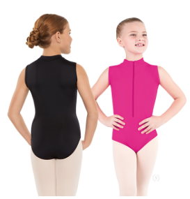 This microfiber mock neck leotard features a front zipper and full back.